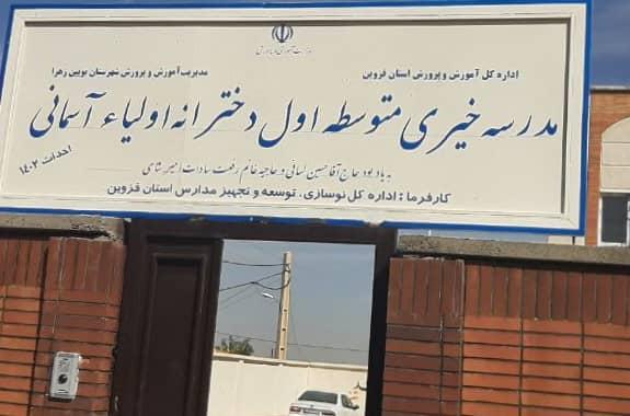 گفتنی است این پروژه به یاد اولیای مرحوم خانوادۀ آقای امین لسانی، با مشارکت و همت خانوادۀ ایشان و اداره کل نوسازی مدارس استان قزوین، با اعتباری بالغ بر ۹ میلیارد تومان و مساحت ۶۹۰ متر مربع ساخته و مورد بهره برداری قرار گرفته است.
