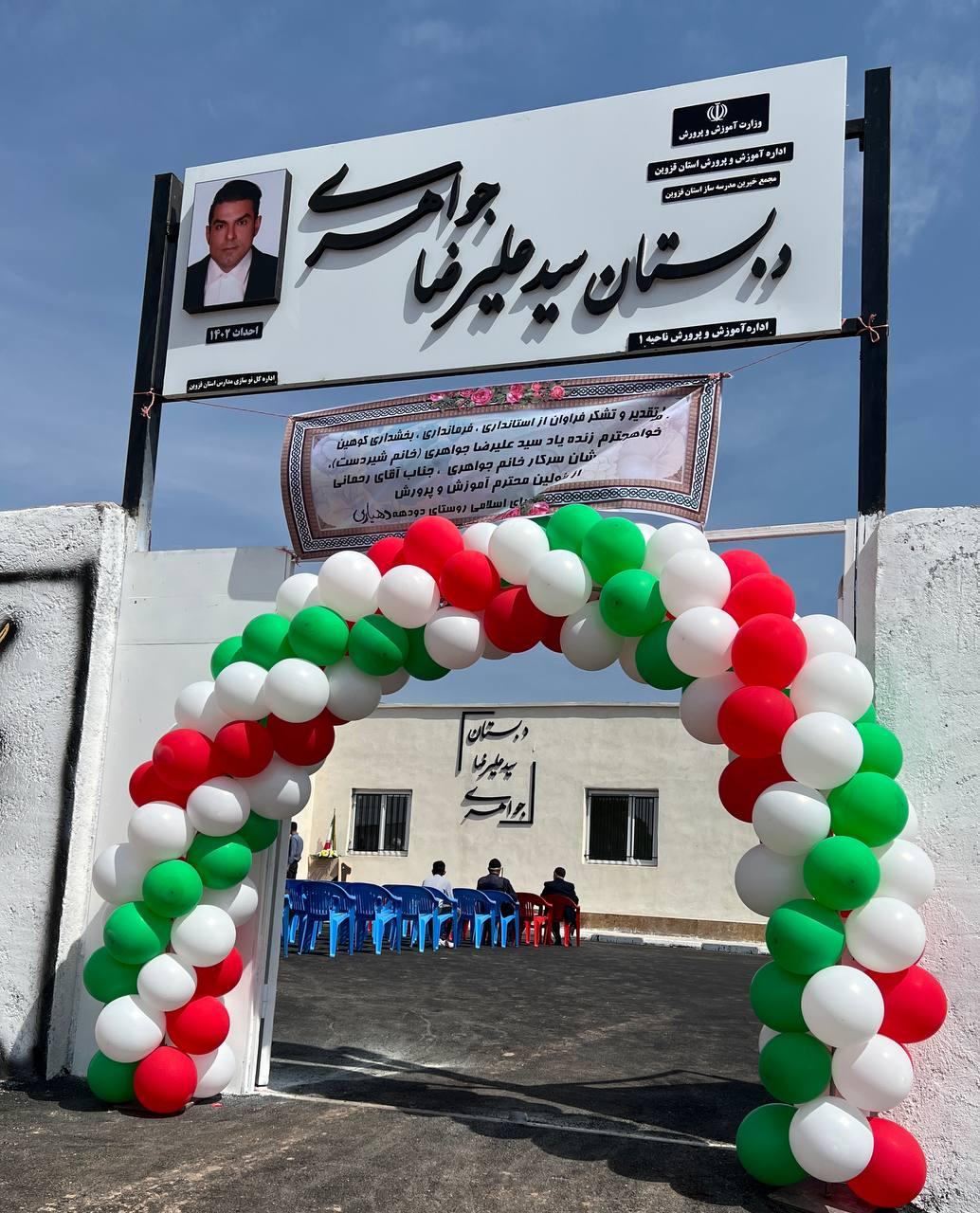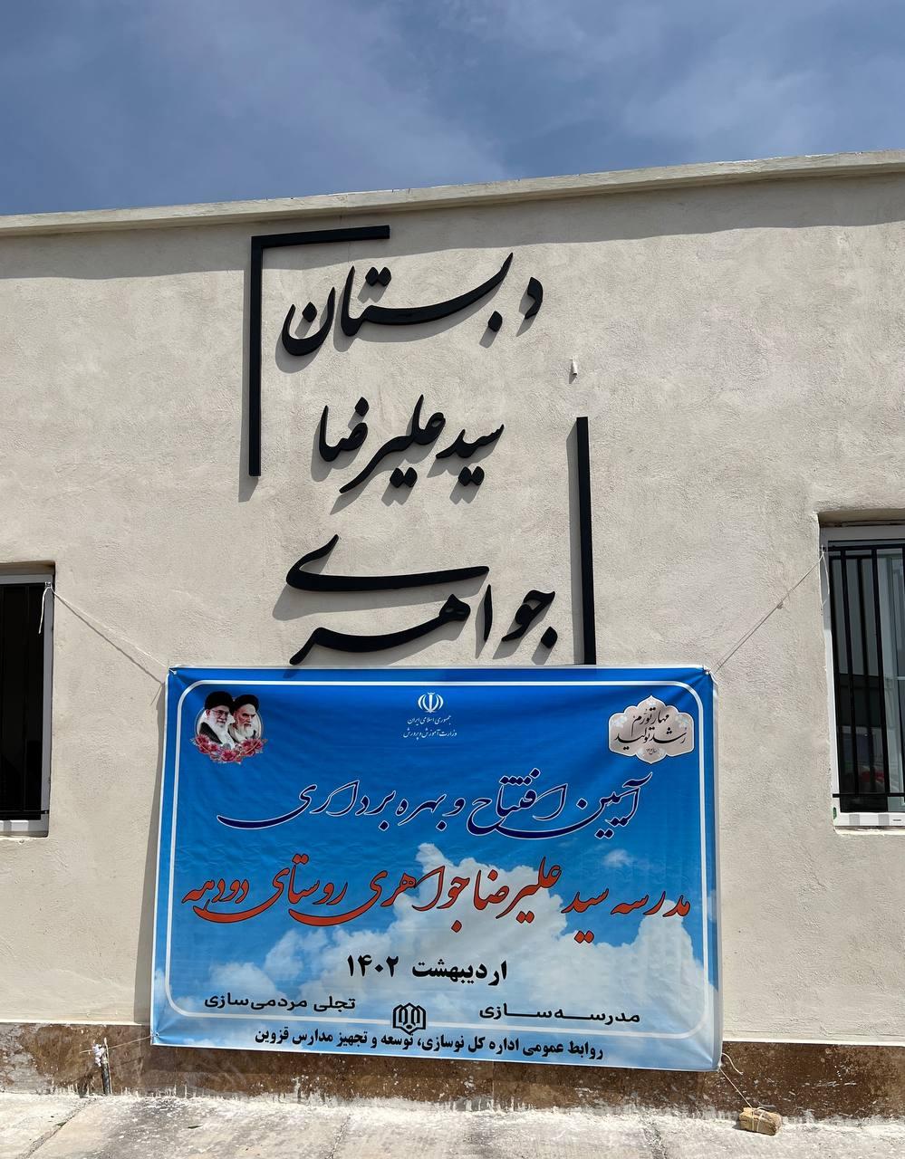 می­دانم خیلی مدارس نیمه ­کاره رها شده است اما ما اسفند ماه ۱۴۰۱ قرارداد بستیم و قرار بود ۱۵ اردیبهشت تحویل داده شود که تا اوایل خرداد ۱۴۰۲ تحویل دادند. مدرسه در روستای دودهۀ کوهین به نام برادرم «سید علیرضا جواهری» است.